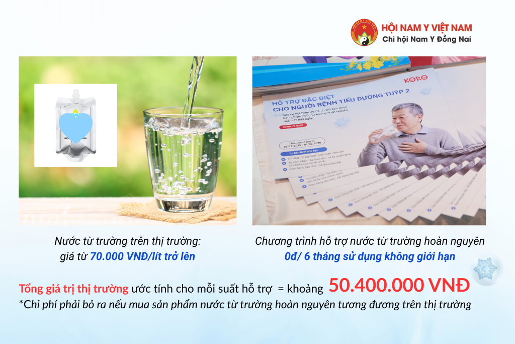 Chi Hội Nam Y Đồng Nai triển khai chương trình trao tặng 100 suất cơ hội trải nghiệm giải pháp nước từ trường hoàn nguyên tại nhà trong thời gian 6 tháng. Mỗi suất hỗ trợ giúp người tham gia chủ động sử dụng nước từ trường hoàn nguyên hằng ngày, với tổng sản lượng ước tính khoảng 36.000 lít, tương đương giá trị thị trường khoảng 50.400.000 đồng. Đây là hình thức hỗ trợ thiết thực, tạo điều kiện để người bệnh tiếp cận một giải pháp nước uống được cải thiện về chất lượng, thuận tiện trong sử dụng, đảm bảo tính liên tục và phù hợp với sinh hoạt gia đình.