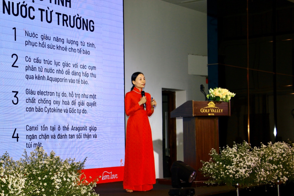 Bà Nguyễn Thị Minh Đăng – Phó Chủ tịch Chi hội Nam y Đồng Nai; Chủ tịch HĐQT, CEO của công ty cổ phần KORO phát biểu bài tham luận tại Hội thảo khoa học Nam dược trị Nam nhân.